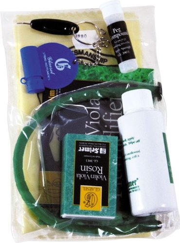 - Contains peg compound (loosens tight pegs), humidifier, rosin, "A" pitchpipe, chinrest key, tension peg key, polish, and polishing cloth