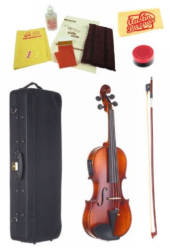 - Care kit includes shoulder rest, rosin, polishing cloth, fingering markers, polish, and pamphlet